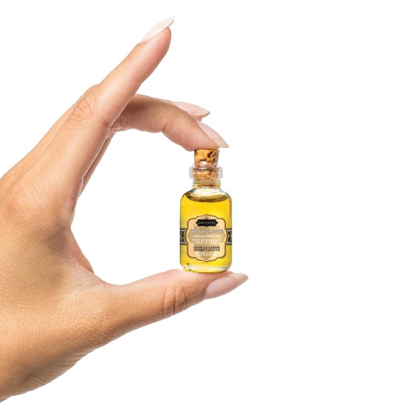 - Aceite de masaje de vainilla kssable y efecto calor.