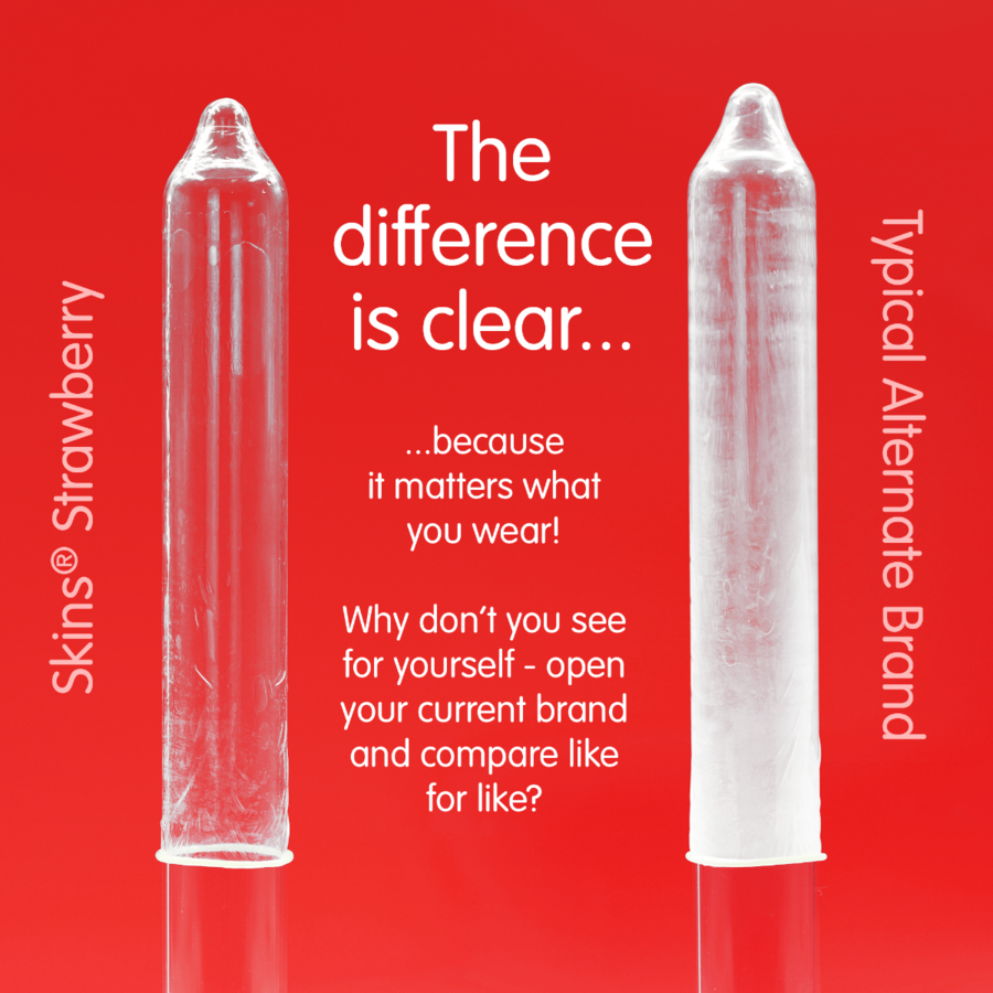 Presentamos nuestro nuevo pack de 4 con sabor a fresa, con un diseño elegante y listo para usar, y hasta un 33 % más de condones que el líder del mercado. Añade un clásico sabor afrutado a tu gama de productos con los condones Skins sabor fresa. Fabricados con látex natural de primera calidad para una sensación transparente y natural, estos condones están diseñados para brindar una sensación de segunda piel sin comprometer la resistencia ni la seguridad. Ideales para minoristas que buscan ofrecer una opción de sabor popular y confiable para una mayor intimidad y protección.