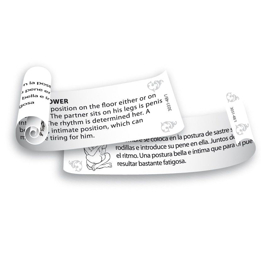 A sensation for you and your partner! Using the tweezers, you pick a scroll from the heart. Which erotic position are you going to try? Will it be the goddess ride, the love boat or the adoration? Accept the challenge and experience pleasure and intimacy together.